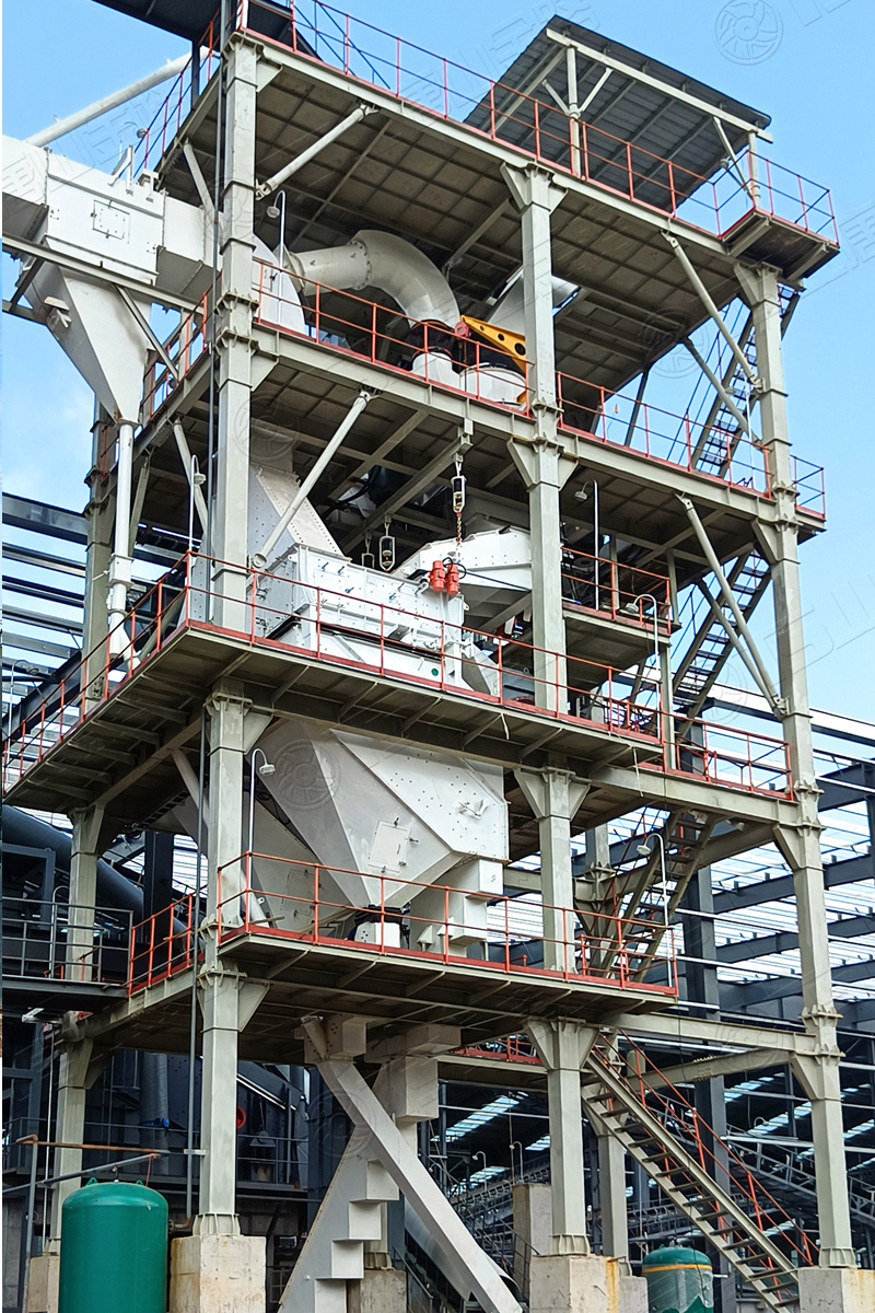 原料經(jīng)過電子秤進入到皮帶輸送機中,由全封閉的提升機將物料入到五孔碾磨制砂機內(nèi)進行破碎處理,再由空氣篩對破碎后的物料進行篩分處理,篩分后的較大物料會返回五孔碾磨制砂機中進行二次破碎,符合要求的砂子則進行裝載外運;篩分過程中的粉塵會經(jīng)粗細粉分離機進入到布袋收塵器中,而其中較大的粗顆粒會在粗細粉分離機的作用下,按需求在成品砂中進行回摻,細粉塵將通過風力進入到布袋收塵器再次回收利用。