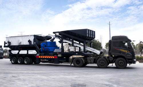 移動制砂機(jī)目前主要有履帶式制砂機(jī)和輪胎式制砂機(jī)。履帶式制砂機(jī)運行時更加的穩(wěn)定,輪胎式制砂更加便于運輸。這兩種形式的制砂機(jī)都具有變更場地塊、運輸方便的優(yōu)點。但是相對于固定式制砂機(jī)而言產(chǎn)量有些低。