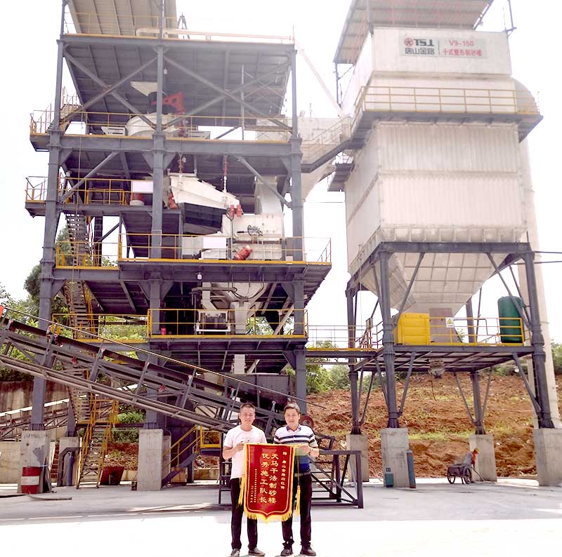 天馬建筑是一家現(xiàn)代化綠色環(huán)保型生產(chǎn)企業(yè),該公司專業(yè)生產(chǎn)商品混凝土。高度重視產(chǎn)品的質(zhì)量,以“質(zhì)量第一,服務至上”為企業(yè)宗旨,現(xiàn)需擴建一條時產(chǎn)150噸機制砂生產(chǎn)線。經(jīng)過多方考察、對比,最終選定了唐山金路的制砂生產(chǎn)線。唐山金路根據(jù)天馬建筑制砂原料和用砂需求,為天馬建筑量身定制的這套時產(chǎn)150噸的V9干法制砂生產(chǎn)線。項目投產(chǎn)近一個月以來,得到天馬建筑的高度認可與好評,在項目實施階段,對我公司安裝人員的技術(shù),給予肯定與認可,特送錦旗表示感謝。這錦旗不僅僅是榮譽的象征,更代表“天馬建筑”對于唐山金路全體工作人員的認可,客戶的滿意就是我們前進的動力。